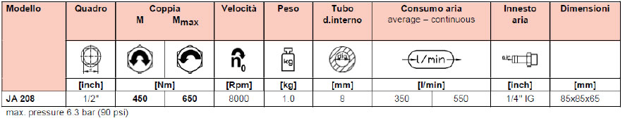 Avvitatore ad impulsi palmare 1/2"VISSEUSE À IMPULSIONS PORTATIVE 1/2 4180011200Spécifications Techniques |